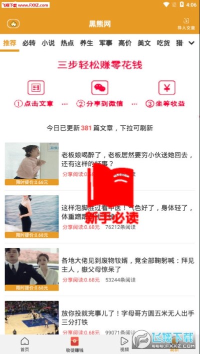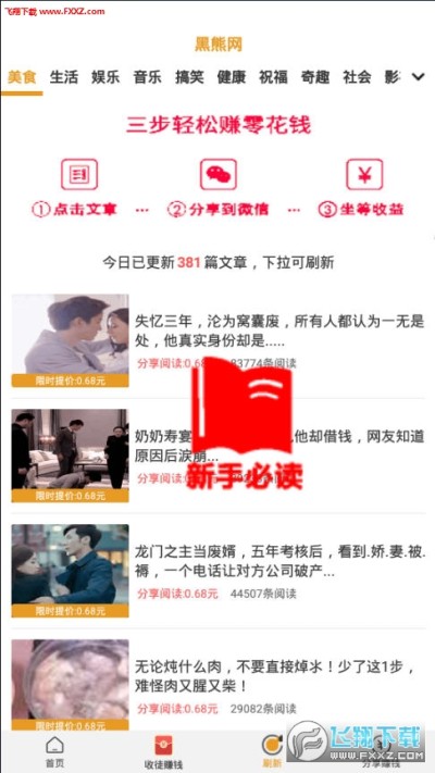 黑熊网app是一款特别火的阅读赚钱app,主要通过阅读一定量的资讯文章来获得收益,每天这里提供海量最新的资讯文章,完成阅读任务就可以轻松赚钱,随时可以提现哦!快来下载吧!
