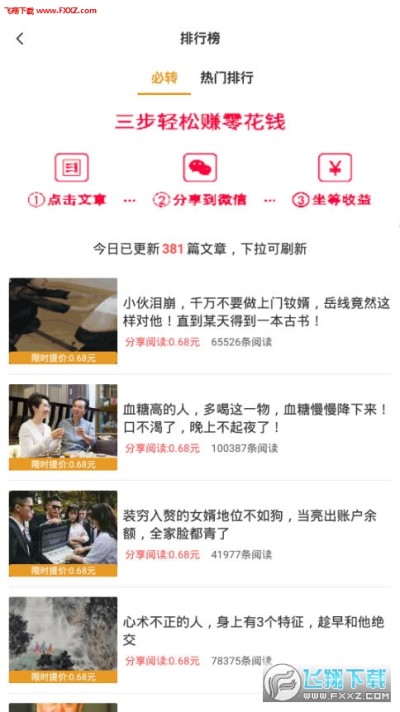 2.阅读就能赚钱,转发给好友或朋友圈赚的更多;