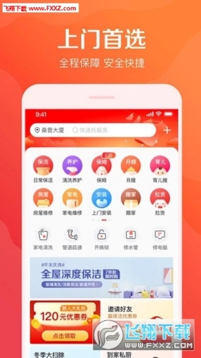 * 预约日常保洁、玻璃清洗、家电清洗、家居养护等服务便捷流畅
