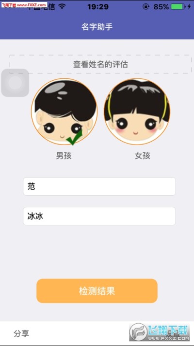 《取名字助手-可以查看姓名的评分》是一个非常有意思的取名字助手,使用它可以帮助宝宝爸爸妈妈给宝取个好名字选择宝贝的性别,输入预先想好的姓名,系统将自动展示您姓名的评分及详细评论。有了详细的评分,结论,包爸妈可以尝试着给宝取一个满意的名字。