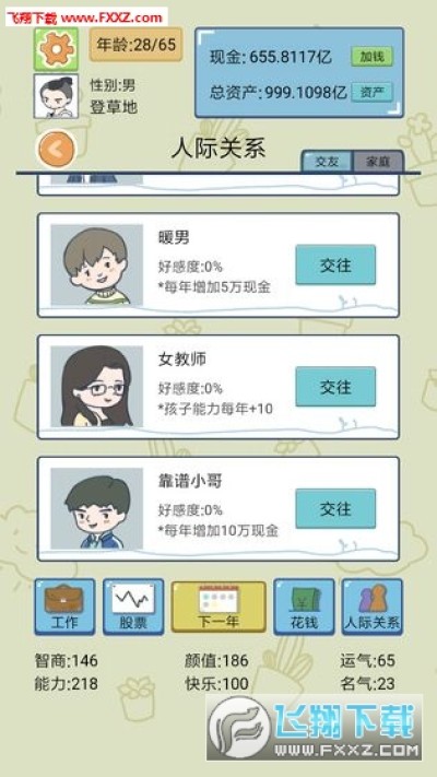 这是一个人生模拟游戏,在这里你可以选择自己的生活方式,努力学习做个学霸,或是投入股市做个股坛奇才,又或是找份工作,和伴侣过平平淡淡的生活?