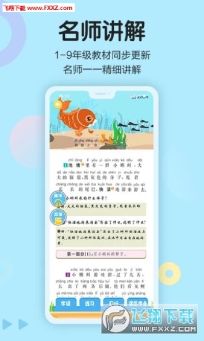 2、名师讲解:1~9年级课文字、词、句、篇全解,与课堂同步精讲;学习拼音、识字练字、组词造句、古诗词、阅读理解趣味化学习,更有趣味闯关小游戏可以加深记忆。