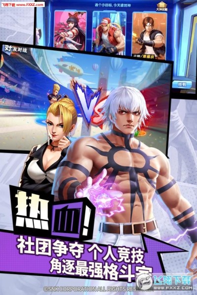 可以在线和对手来一场3vs3对战,还原KOF系列原作的格斗动作体验!组合最强队伍,战斗到底。