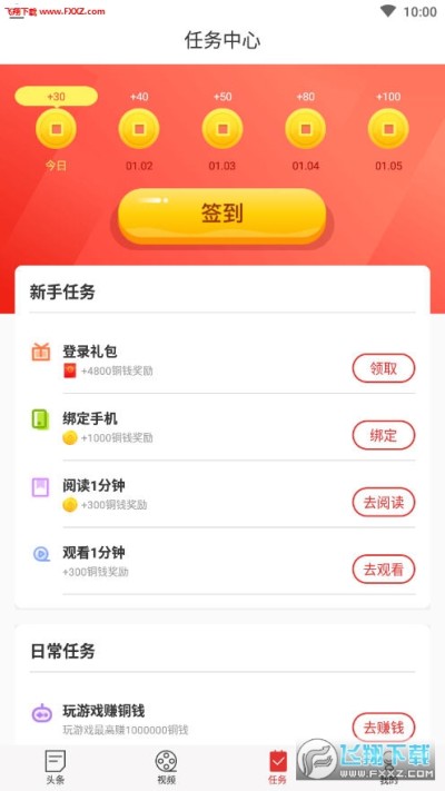阅读视频额外赚,每日签到继续赚,一元提现到账快
