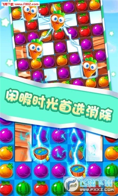 1、非常清爽舒适的消除类休闲闯关模式,大量的清凉的水果全屏释放不断的点击消消乐将所有水果粉碎即可;