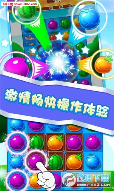 清爽水果打造自然舒适视觉体验,经典消除玩法重新挑战你的脑力极限,关卡水果随机分布,每次开始都会不同,自由挑战完成指定的关卡任务,合理交换水果位置解锁超多酷炫特效,更大面积消除水果通关更加轻松。