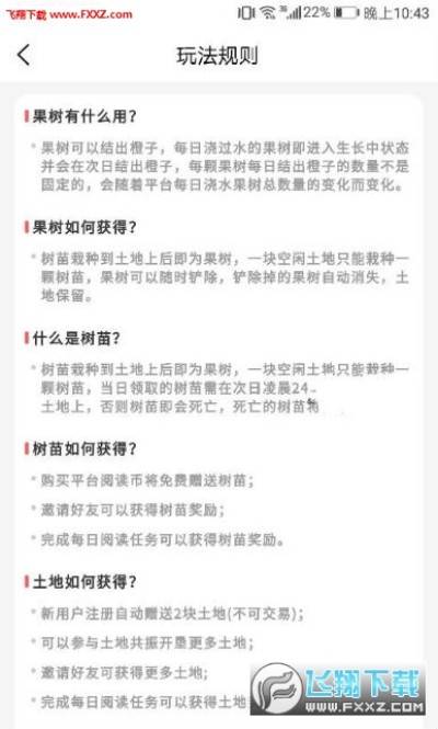 每天阅读小说,在界面的右上角有一个小圆圈,每转动一圈就算一次有效阅读。阅读每满1圈可以获得3滴水,每满10圈可以获得树苗,每满30圈可以获得一块土地。新用户每天最多获得90克水,3棵树苗,1块地。
