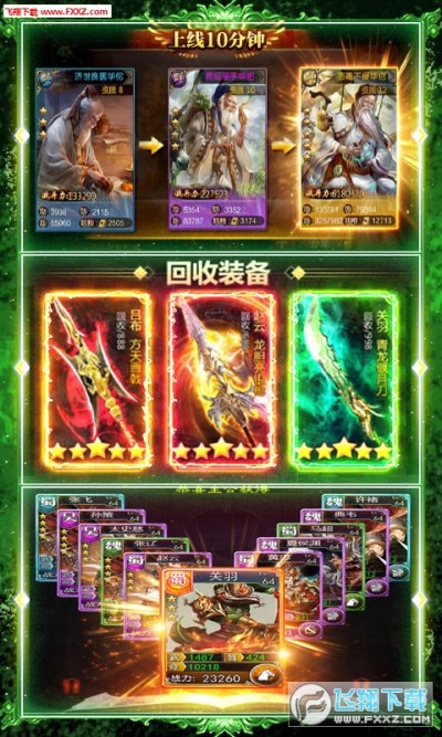 首次充值送神将关羽与终级神装!升级疯狂送元宝,十连随便抽!!只要肝,0氪首充档也可随便玩个痛快,满阶红将随意升!