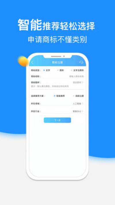 1 普通商标注册:提供商标注册前商标查询,注册商标提交申报完成当日上传,用户只需点选相应行业类别,系统将自动推荐商标类别以供用户查看注册,