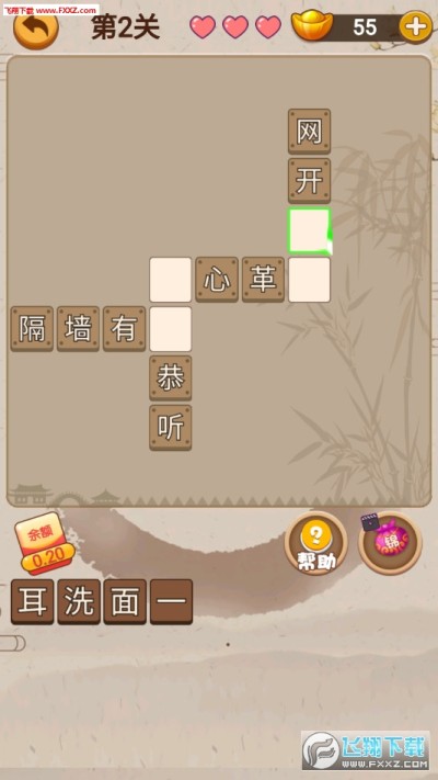 1、填写成语的方式特别简单,看到合适的字就能连成,全部正确才能实现过关;
