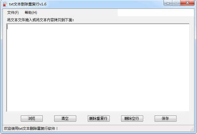 1.将文本文件拖入2.点击“删除重复行”即可