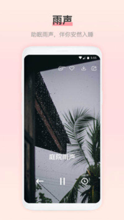 - 雨声:采集自大自然中的每一个雨声场景,纯雨声、轻雷声、海浪声、小溪流水声、深山雨林声...