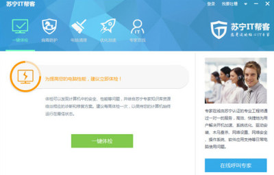 苏宁IT帮客是一款很不错的电脑杀毒优化软件,它提供电脑快速杀毒,垃圾清理,系统优化等常用的电脑优化功能,让你的电脑有效的提速,同时,苏宁IT帮客还可以让你咨询专家,给你的排忧解难。