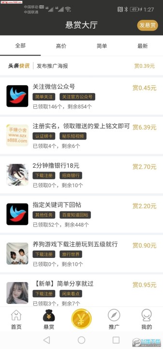 ②打开悬赏大厅看看,像指定关键词回帖这种单子,其它平台很少见或者没有
