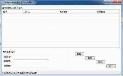 海鸥md5文件批量计算和校验器是一款专门用于计算文件md5值的工具,可批量进行计算,并且可以和文件下载前网上提供的md5值进行比较,来查看文件的完整性和正确性。