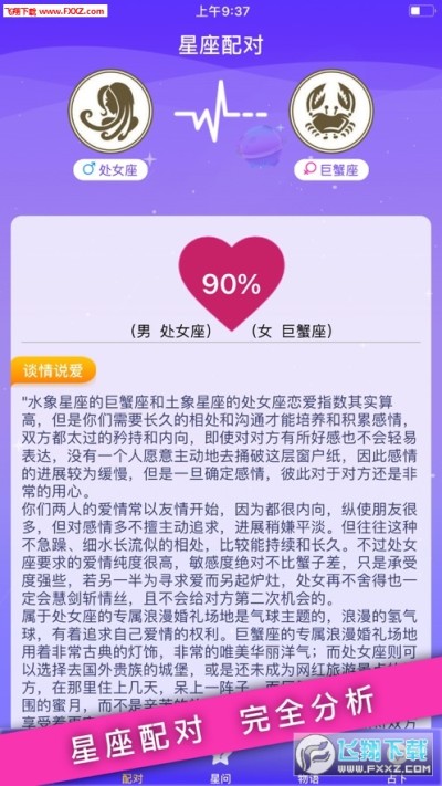 方便用户查看不同星座的男女的配对情况和处理感情的方式。