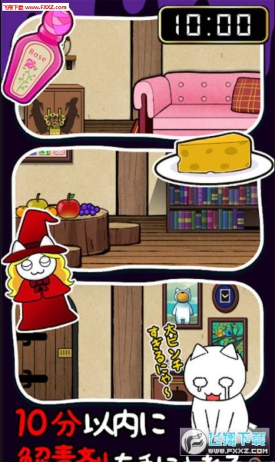 死翘翘前10分钟:可怜的白猫吃了有毒的苹果,他就要死翘翘了!你现在有10分钟的时间趁他毒发之前帮助找到解药的下落。虽然这只白猫不可爱但是我们也不能眼睁睁看着这么有趣的白猫死掉啊,所以赶紧开动你的聪明的小脑筋帮忙找找线索吧。