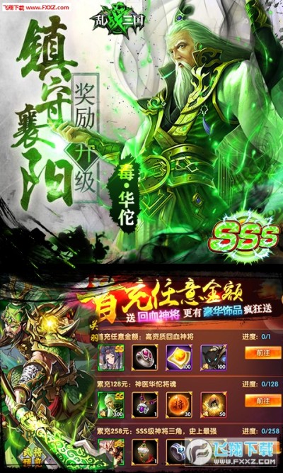 ★首次充值送毒华佗与终级神装!升级疯狂送元宝,十连随便抽!!只要肝,0氪首充档也可随便玩个痛快,8星武将随意升!