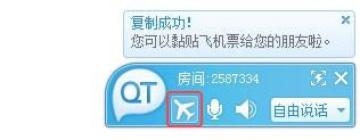 点击飞机按钮,会生成一张当前QT房间的“飞机票”(房间的超链接地址),您可以复制这个超链接到QQ聊天等界面,告诉您的朋友。您的朋友点击超链接就可以进入同一个房间。
