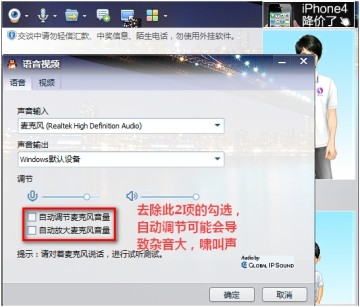 去掉自动调节麦克风音量以及自动放大麦克风音量的勾选;