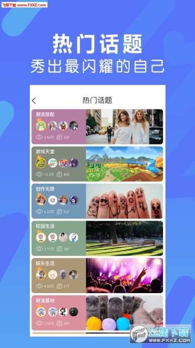 游戏交流、自拍分享、生活交流、才艺展示,完全根据自我爱好,进入不同的兴趣圈,找到志同道合的新伙伴。