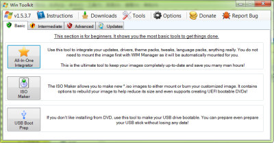 用户可以使用这个程序来访问各种资源,比如Windows ISO映像,更新和互联网浏览器,可以集成在您的安装。这些项目需要一个互联网连接来下载它们并将它们添加到ISO。