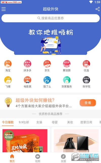 超级外快是一个可以帮大家利用空闲时间获得长久稳定收益的APP,分享商品可以赚钱、订机票可以赚钱、点外卖可以赚钱、看电影可以赚钱...