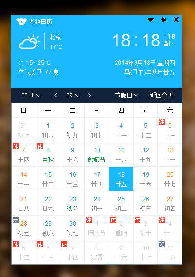 考拉日历是一款强大的桌面日历,提供全国范围内实时的天气预报、节假日安排、