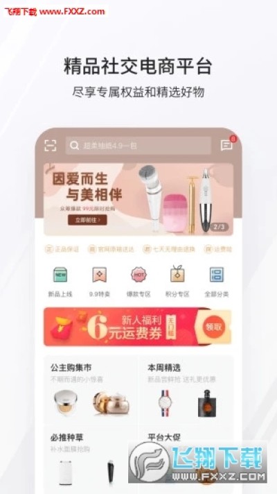 公主购贺岁版app是一款会员制电商平台,这款软件可以为用户提供非常多样的手机消费服务,在这里会员购买商品更加便宜,而且公主购贺岁版app上全新改版,更多跨境商品上线哦,快来下载吧!