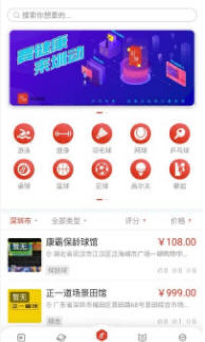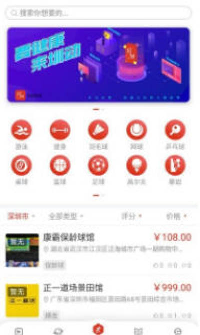 (1)预定涵盖健身、游泳、网球、羽毛球、桌球、乒乓球、、篮球、足球、攀岩和航海等10多种主流运动项目,用户可选择运动项目,选择想去的场馆,查看场地价格、时间段信息,在线预订支付,线下去场馆出示验证码,即可畅快运动。