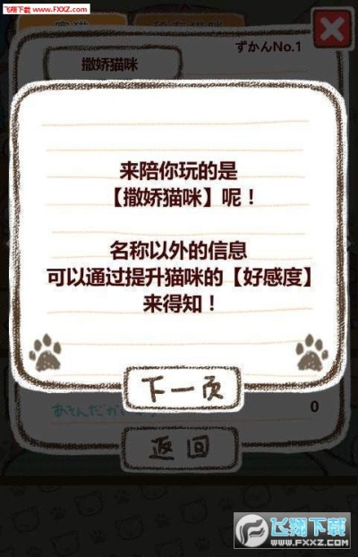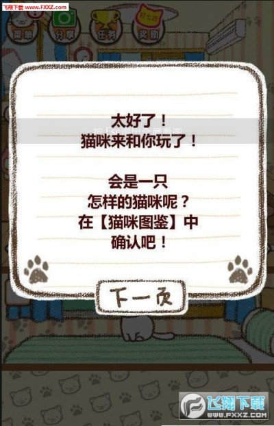 根据提示进入游戏,找到猫爪,按屏幕使它上面的数字由大变成零,此时就可以获取一只拥有不同性格的可爱猫咪了,接下来就到自己和猫咪建立感情的时候了,如果你真是一个很和善的人,那么当你触摸猫咪的时候,它会做出相应的反应,连续触摸还会给你更大的惊喜呢。游戏中还可以收集五颜六色的蝴蝶呢,也可以给小猫咪买家具,置办一个属于自己和猫咪们的家。