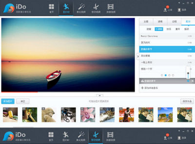 土豆iDo是土豆网推出的一款免费视频制作软件,大家只需花费一分钟三步即可完成相册MV的制作,操作起来非常的方便快捷。这款软件内置了边框、片头尾、字幕、滤镜、动画和音效等素材,能让大家的照片和视频生动起来。同时这款软件还支持视频的剪切、拼接和配乐等,功能非常的强大!