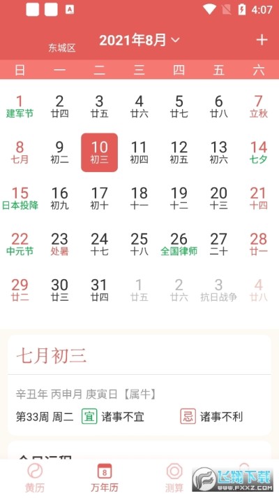 天象黄历APP是一款日历查看软件,提供了最详细、最准确的日历信息,通过这款APP就可以快速查看,了解并掌握每一天的日历信息,提供了简洁的万年历,利用简洁的界面方便用户查看自己需要了解的日历,化繁为简,让日历查看变得更高效,更有传统黄历可以查看,每天的运势、事宜禁忌都会为你提供,让你及时能避免,每天都能拥有好运气,不用去找算命先生,自己就能选择吉日,通过日历提供的信息,就可以找到最好的吉日,还会告诉你当天该做什么事,非常的详细,是你的生活好帮