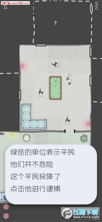 你需要控制手下的警察,突入到未知的房间之中,解决一个个歹徒,解救所有人质。