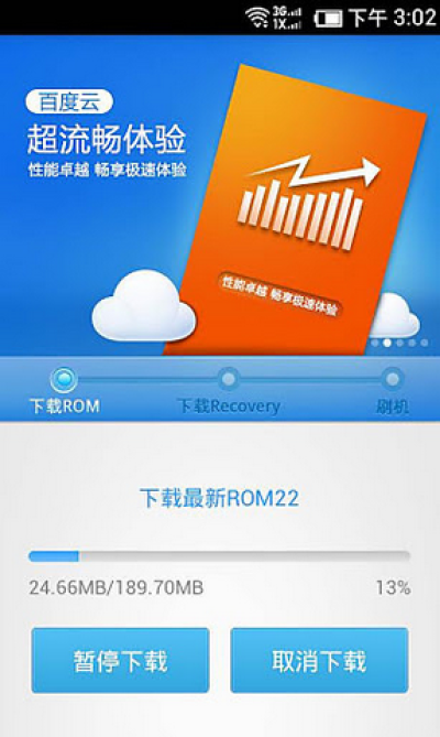 2)可在线下载最新百度云ROM公测版,进行一键刷机;