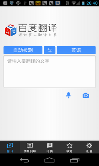 百度翻译是一款集翻译、词典、情景例句于一身的翻译应用。免费提供高质量中英和中日互译的翻译服务,同时整合离线翻译、语音翻译和摄像头翻译功能,能够随时随地便捷的满足用户的翻译需求,是您生活、旅游、学习不可或缺的最佳帮手。