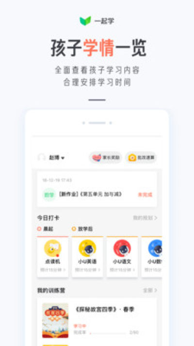 权限管理:科学管控孩子在使用一起小学学生app的独立行为,松弛有度;