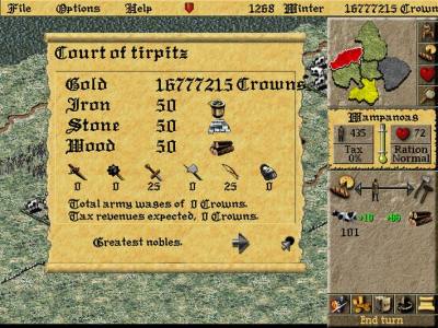 游戏画面采用高解析模式显示,美工的表现极为不错,游戏地图并不是只限在古英伦帝国或 欧洲,而是连非洲或中国都可选择。游戏要求的配备不是很高,在486机上进行游戏,也能 有让人满意的流畅度。