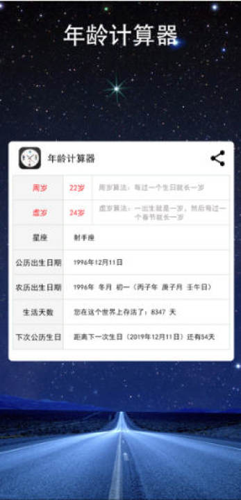 1、精准性的计算方式,输入年龄就能计算了,不管是阴历还是阳历;