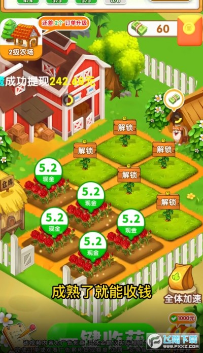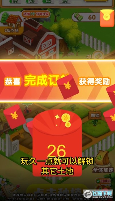 富豪大农场红包版游戏的亮点在于其独特的红包奖励机制。每当玩家完成一次收获,就能获得丰厚的红包奖励,这种即时的回馈让玩家在游戏中充满了期待和惊喜。游戏还提供了大量的日常任务,玩家只需轻松完成这些任务,就能获得额外的奖励,让农场经营变得更加丰富多彩。