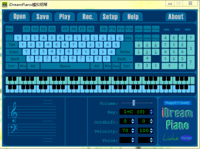 iDreamPiano是一款非常好用的键盘模拟弹钢琴软件,让你电脑前就能用键盘弹奏美妙的钢琴音乐,完全利用所有键盘空间,弹奏时具有按键提示,与一般的Flash钢琴模拟器没有可比性。