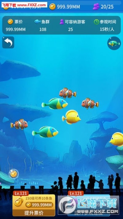 4.通过提升票价和观赏速度让收益更快,解锁更好看的鱼群种族,让大家的参观时间更长。