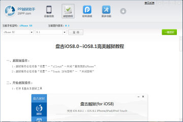 成功连接设备后,从固件3.1开始,一直到8.1都可以完美支持越狱。PP越狱助手会根据用户的设备调出相应的工具与越狱方法,从此省去了用户因为硬件不同和固件不同查找相应越狱工具的麻烦。