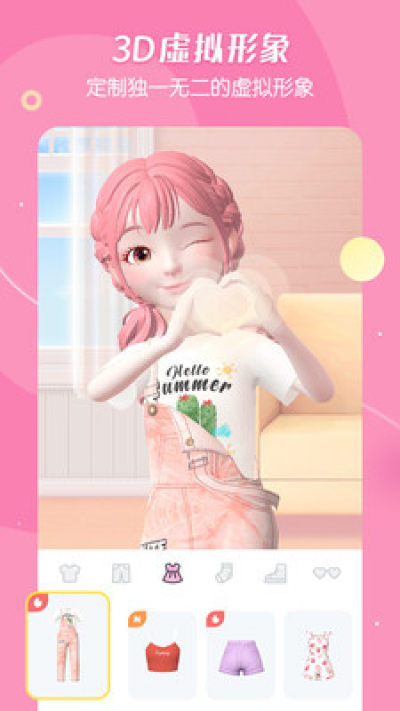 1、【3D虚拟人物】 完全自由定义的专属虚拟形象,潮酷风格服装随性搭配;