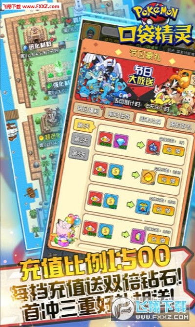 2、充值比例1:500,每档充值送双倍钻石;首冲更有三重好礼;