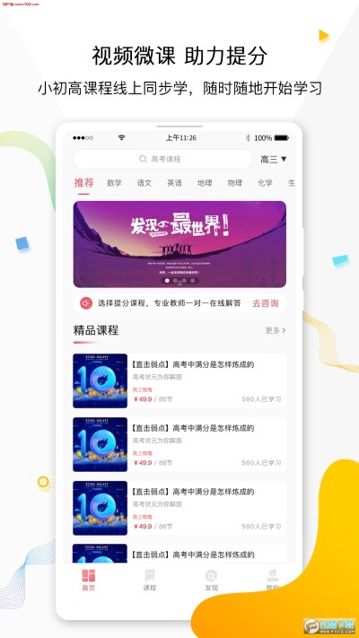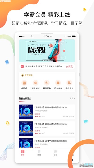 【课程】针对小初高各年级,提供语数外物理化学等全学科海量专题课程,方便孩子课前预习,课后复习。并专门设定提分课程,专业教师一对一解答!