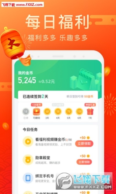 在【赚钱】页面,可以通过完成任务列表获得金币奖励,完成任务越多奖励越多。
