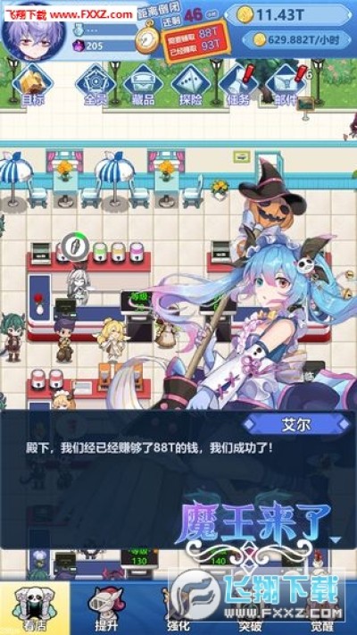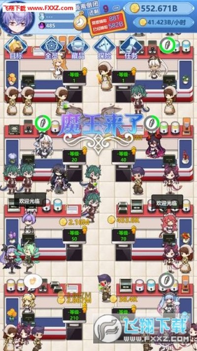 《魔王来了游戏安卓版》是一款经营模拟类的游戏,二次元的人物角色,简单的控制操作,放置挂机玩法,经营你的小店,积累资源,赚取金币解锁更多内容,喜欢的小伙伴可别错过了,赶快下载吧!