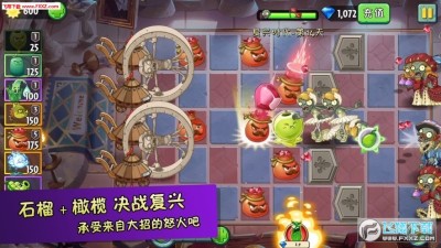 2、四面设防,升级你的植物等级,阻挡僵尸的袭击,赢得更多丰厚的游戏奖励,快速成长;