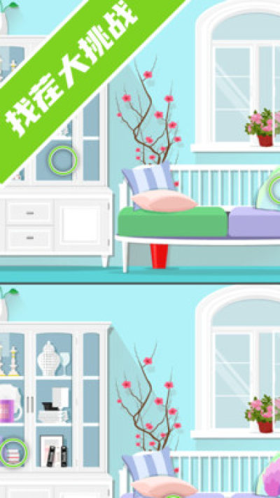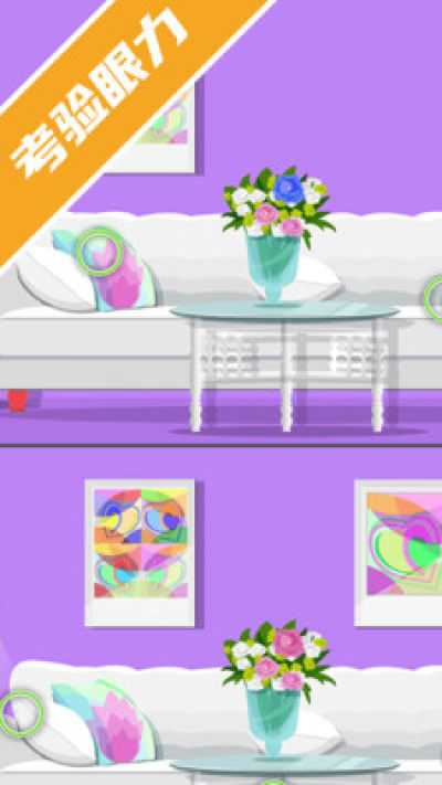 只要把两幅图片中不相同的地方用手指单击找出即可,考验玩家的分析力观察力、适合不同性别不同年龄段的玩家,是一款全民娱乐的游戏。